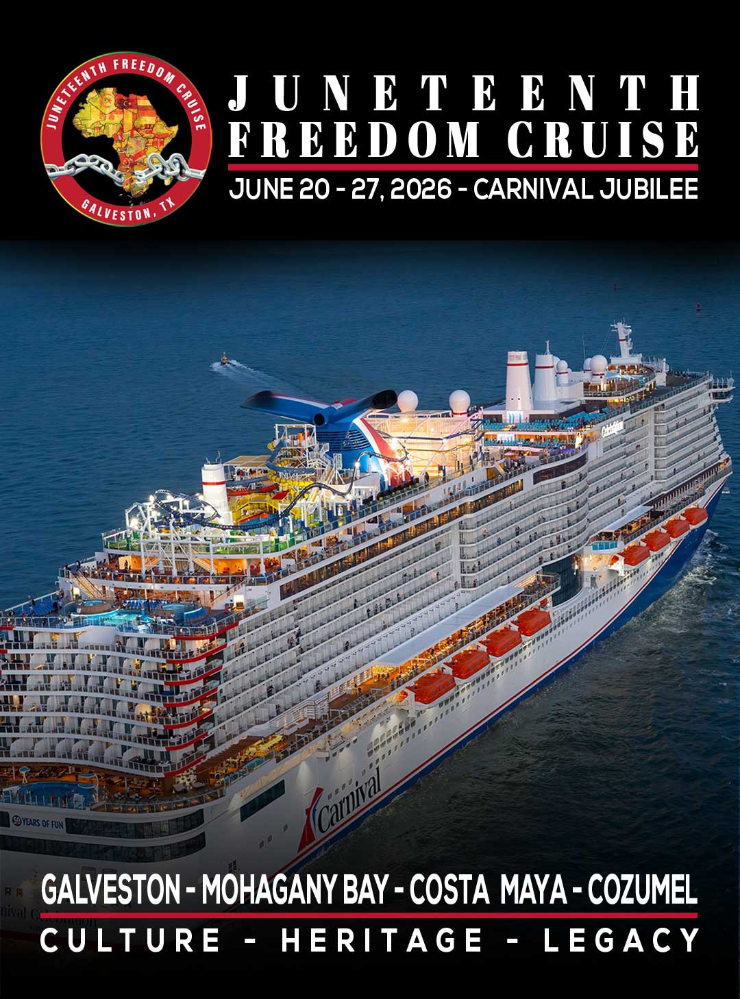 This journey turns every stop into both a getaway and a powerful cultural experience. Sail with Carnival Jubilee and be part of a voyage that honors history while creating unforgettable memories.